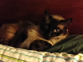 Just wanted to let you know that Gravy is doing well. Since she is not very graceful when flopping down on the floor to lounge, we've re-named her Gracie. She loves playing with her toys, straws being her favorite - she takes them everywhere. She also enjoys the plants on the deck of her apartment as her own private jungle. She's very talkative, and has an opinion on everything, but as long as she is with her people she's in seventh heaven. The vet said she's beautiful and full of personality. Gracie is a fun, social, silly girl and we are happy to have her in our family.
